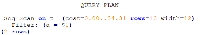 prepare p as select /*+ use_gplan */ * from t where a = $1;