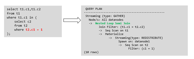 explain (costs off) select * from t1 where t1.c1 in (select t2.c1 from t2 where t1.c1 = t2.c2);
