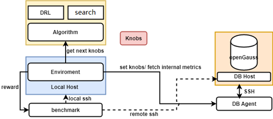 - DB: The DB_Agent module is used to abstract database instances. It can be used to obtain the internal database status information and current database parameters and set database parameters. The SSH connection used for logging in to the database environment is included on the database side.