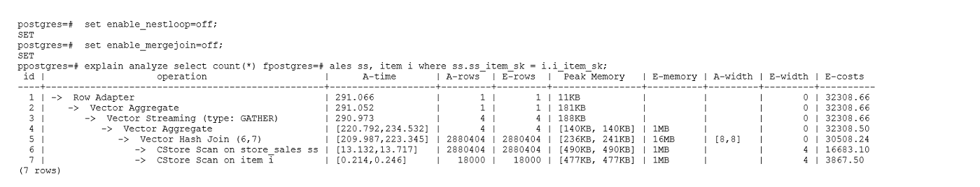 2 | -> Index Scan using idx on store_sales_row | [13.352,13.352] | 3360 | [34KB, 34KB] |