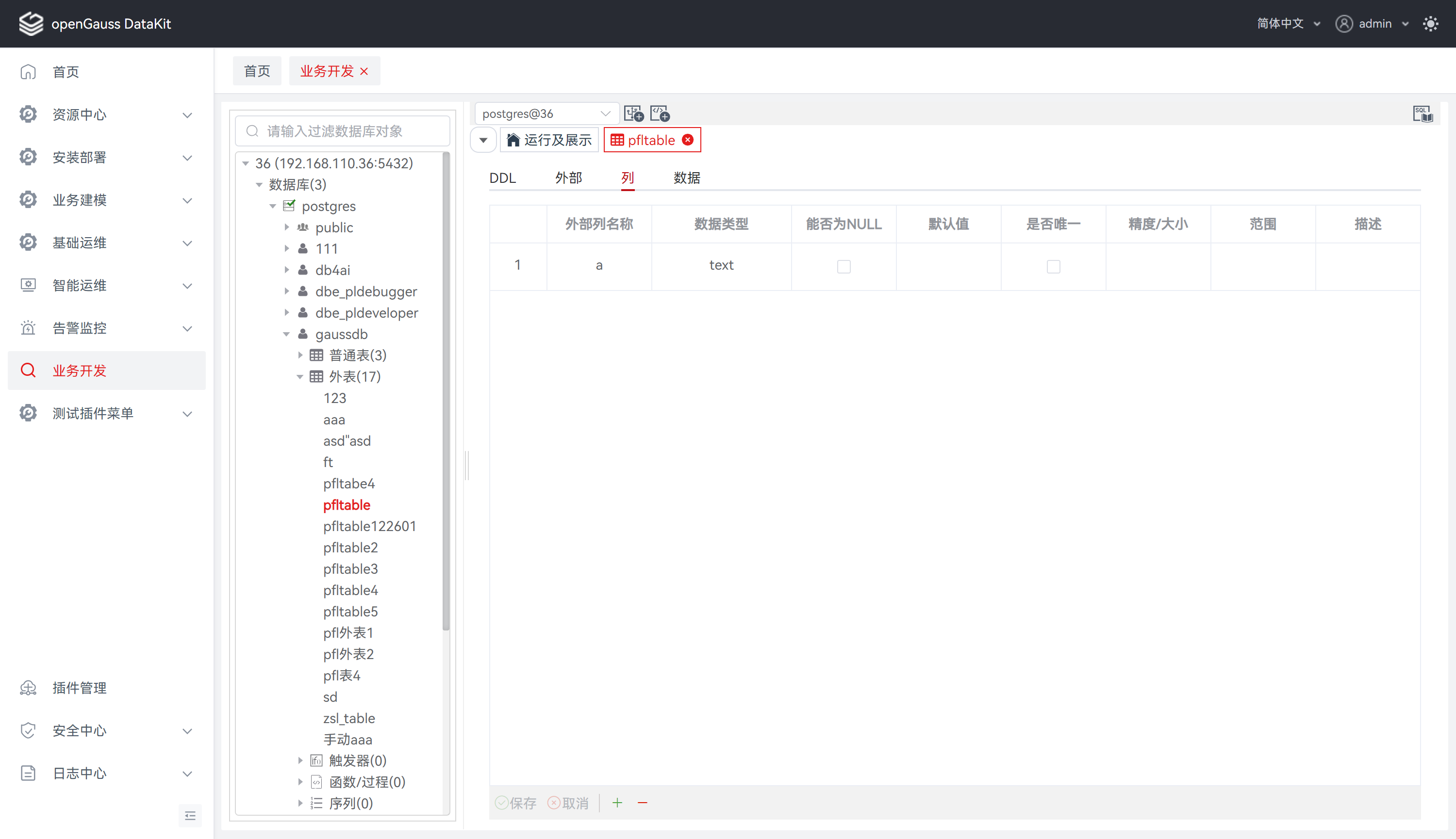 步骤 2: 支持查看DDL/外部、查看与修改列/数据,详情请见下方说明。