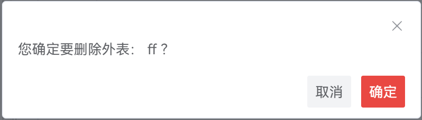 说明: 单击 “确定” 将删除外表,此操作不可逆。