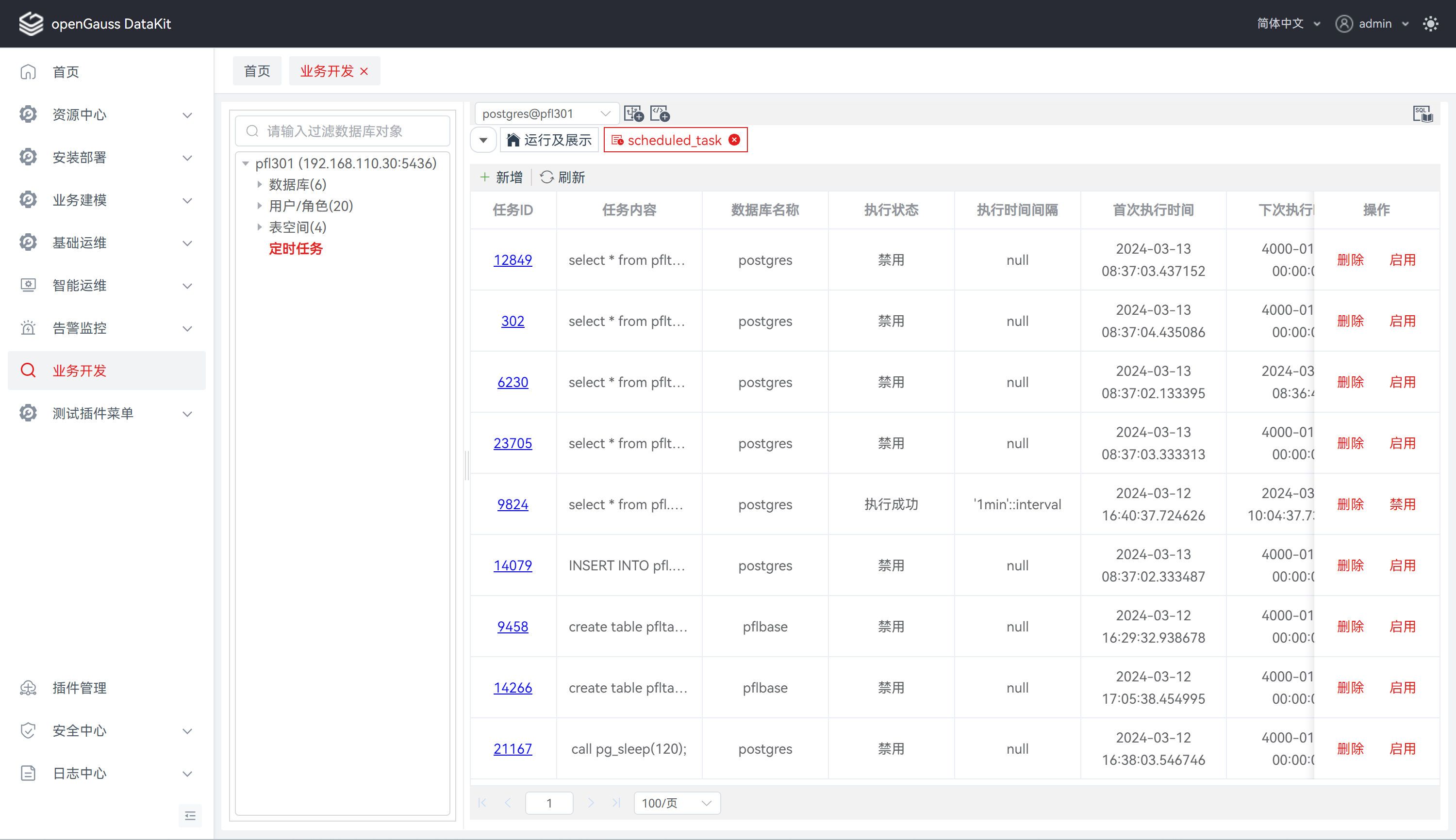 支持通过编写SQL脚本形式(自定义SQL语句或者调用已有的函数/存储过程)的任务内容并设定任务执行时间,数据库将在任务时间内执行对应的任务内容,以达到自动化执行任务的效果。