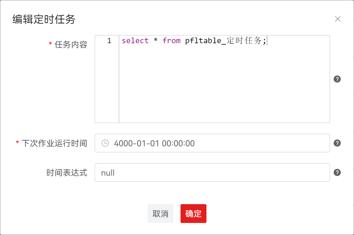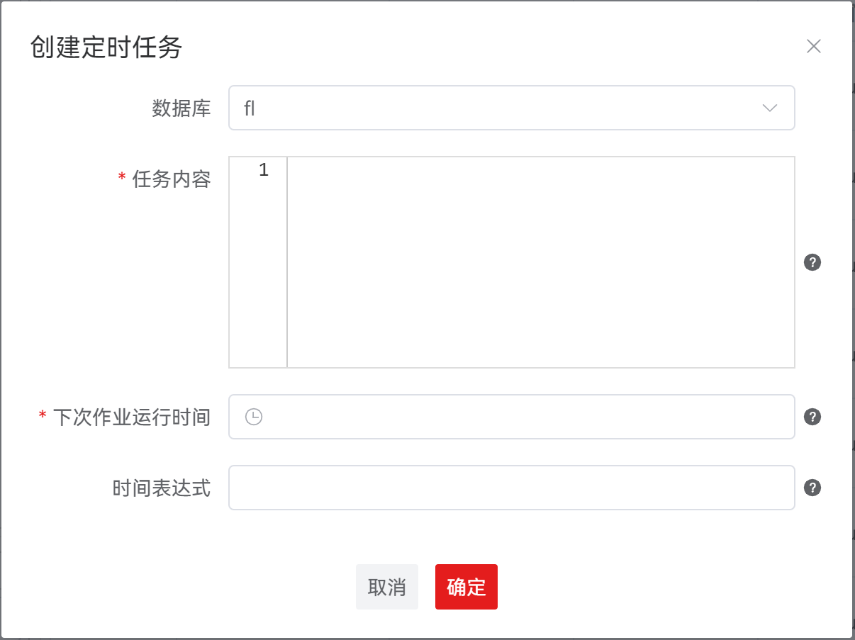 数据库 | 否 | 用于指定定时任务所对应的数据库。默认为当前连接实例对应的数据库,下拉选项为当前连接实例所有已连接的数据库 |