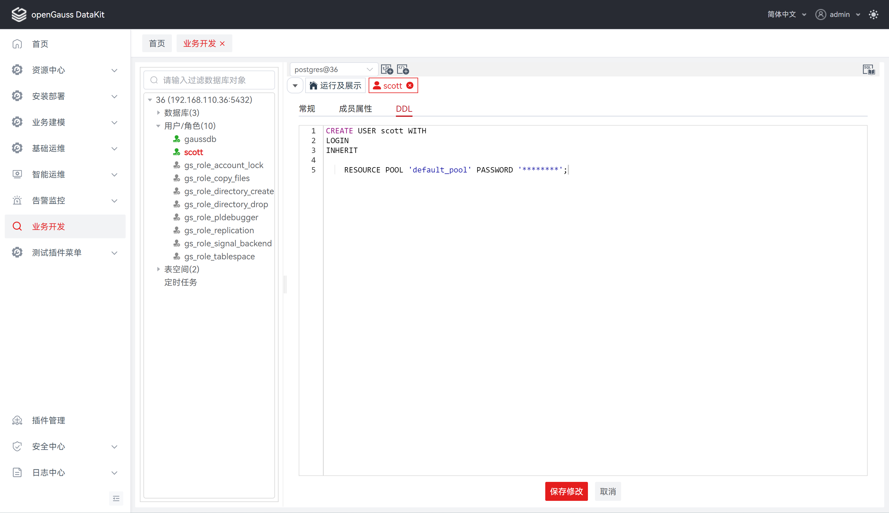 | 操作用户密码 | 是 | 用于填写当前操作用户的密码,用于验证数据库用户身份 |