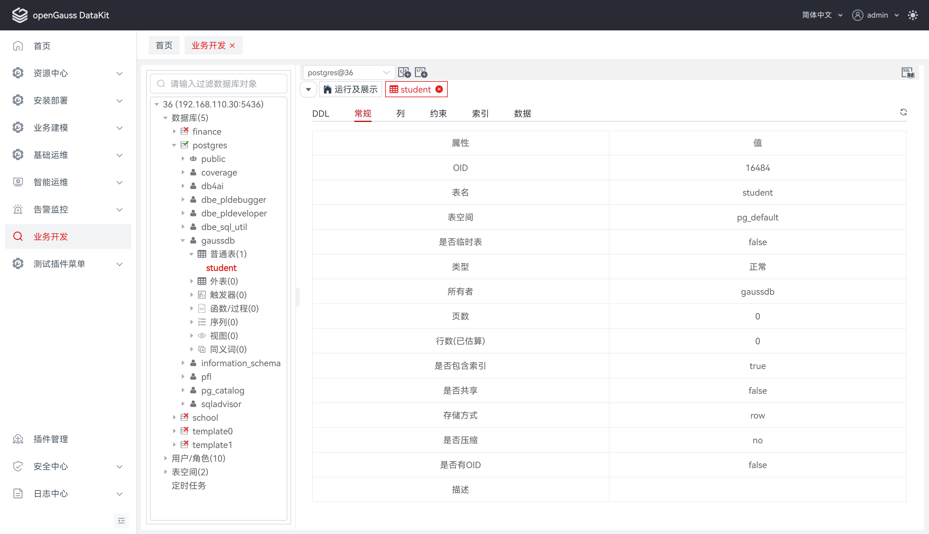 支持查看表属性,查看内容包含 DDL、常规、列、约束、索引、数据,若所选表为分区表,查看内容还将包含分区属性。