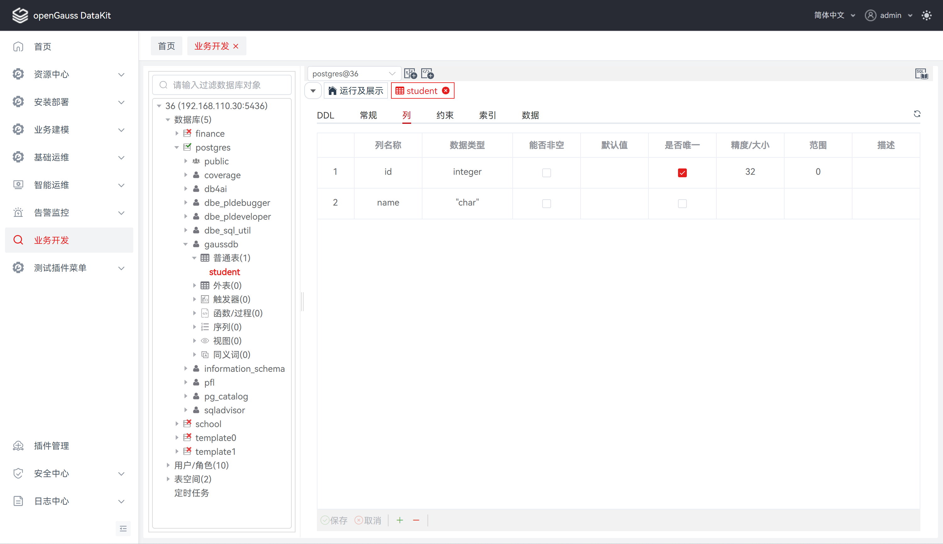 创建表后,可以在该表中添加新的列。可对当前列执行添加、修改、删除操作。