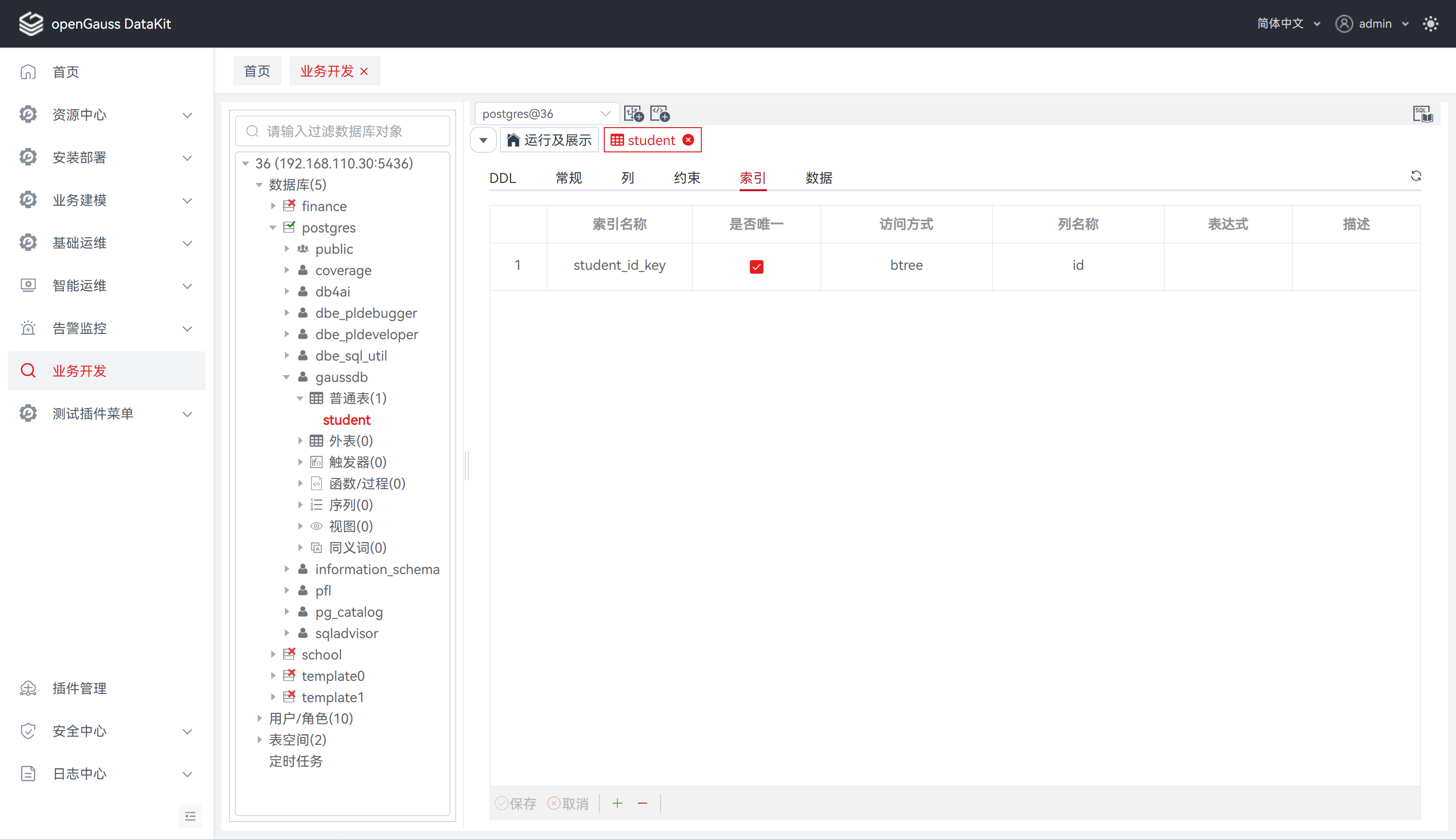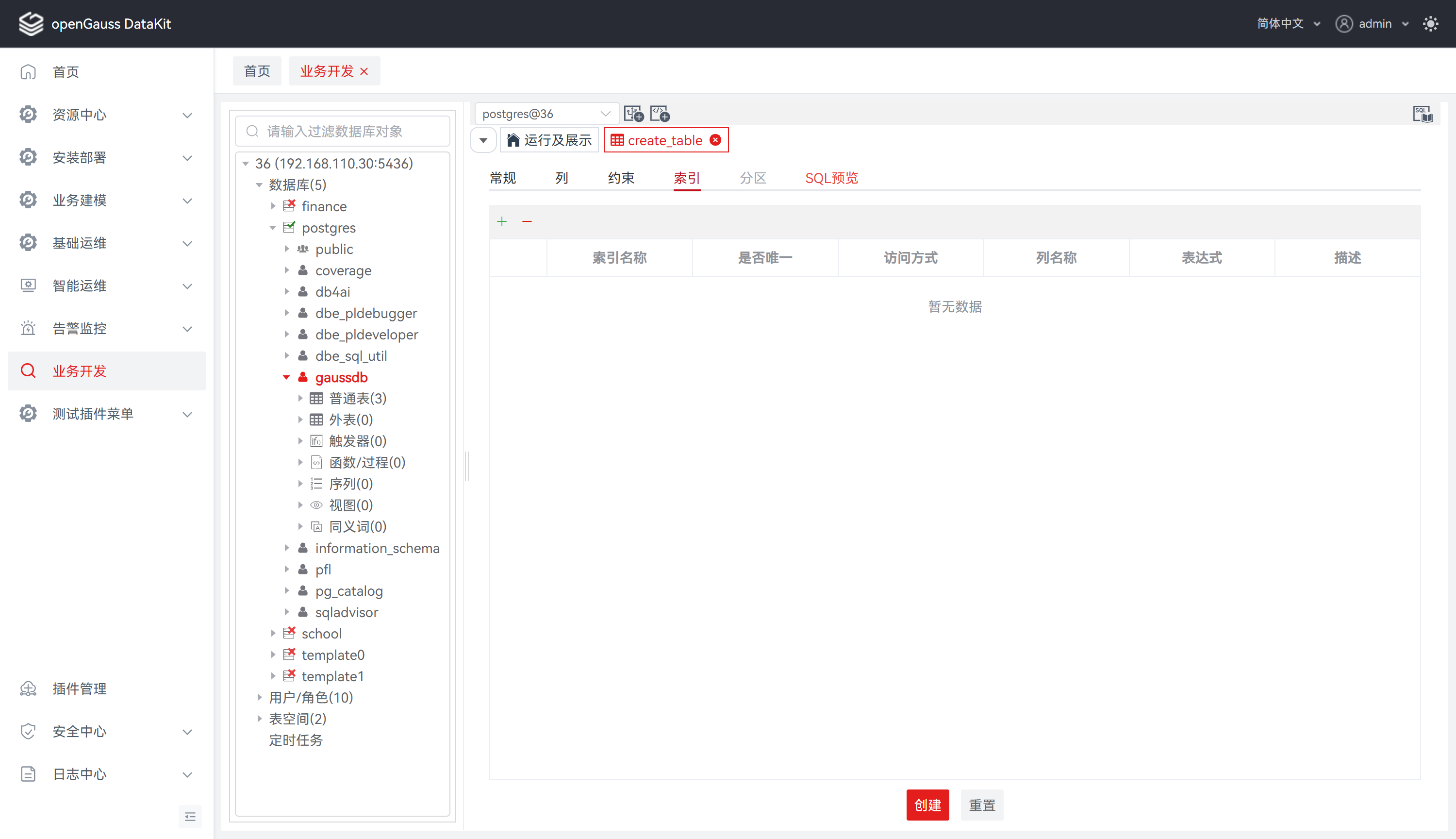 步骤 5: 点击 “索引” ,定义表索引信息,如索引名称、访问方法、表空间等。详情请参见 定义索引 。