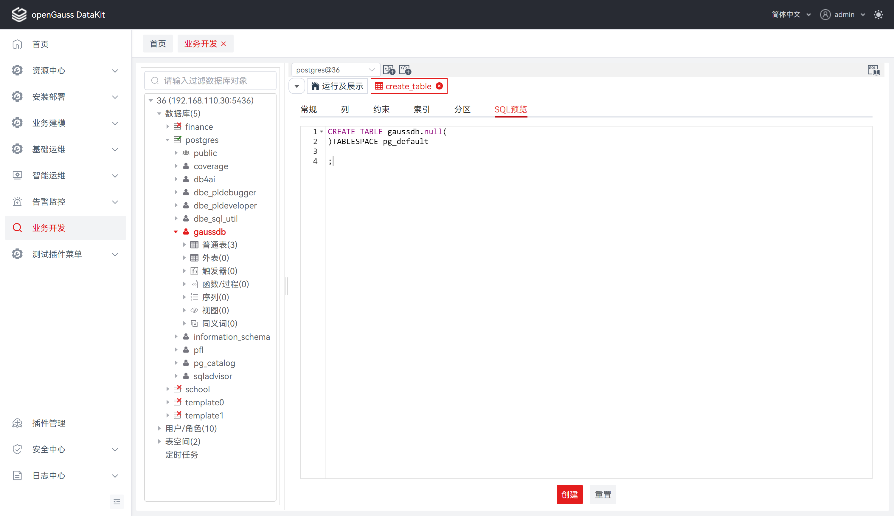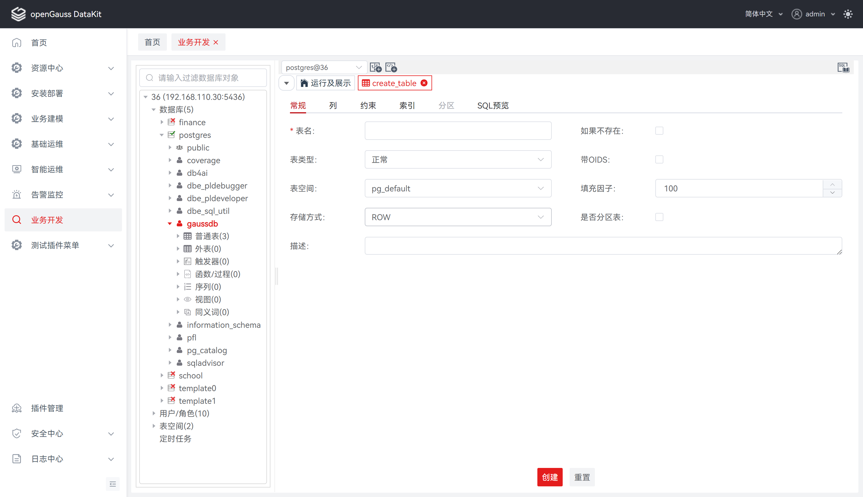 | 表类型 | 否 | 用于定义表类型,选项分别为常规/UNLOGGED |