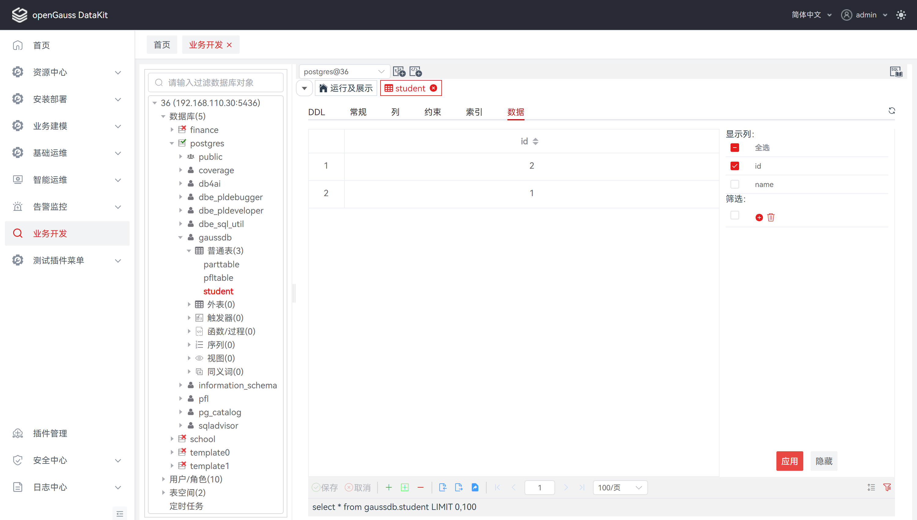 步骤 3: 在数据筛选栏中,可选择显示列,勾选表示显示,未勾选表示隐藏,默认为全选,即全部显示。