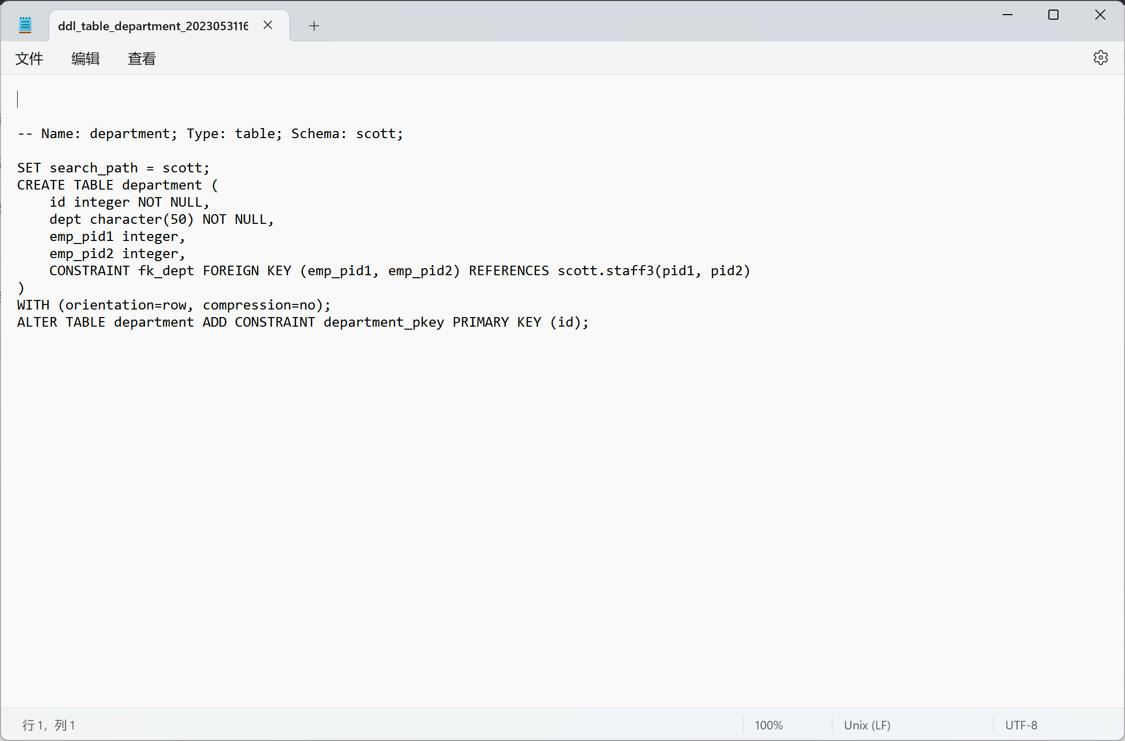 说明: 该 DDL 语句仅支持查看、选择、复制,不支持编辑。