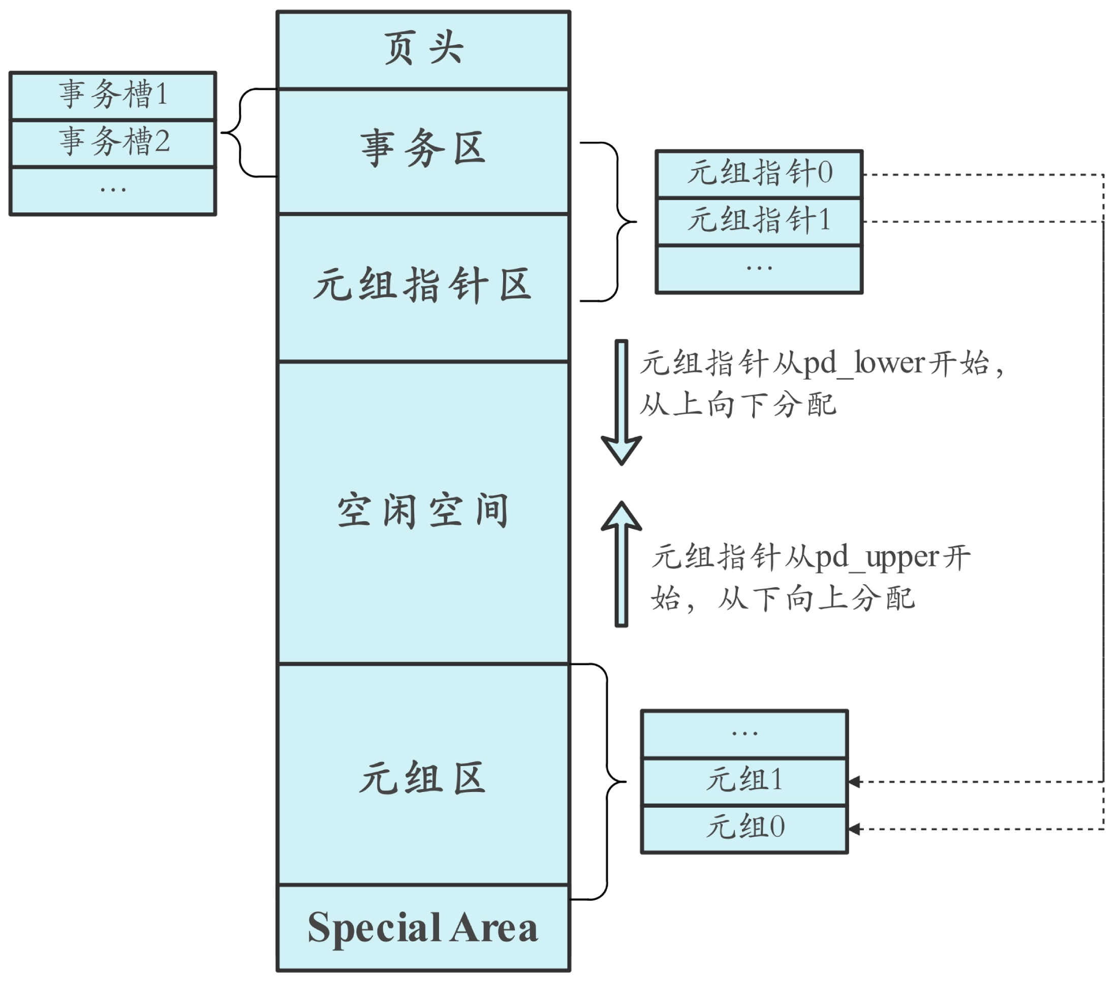 多版本索引层次结构与 Btree 索引基本相同,非叶子节点与 Btree 索引保持一致,仅页尾的Special字段有所不同,下图为UBtree叶子页面结构: