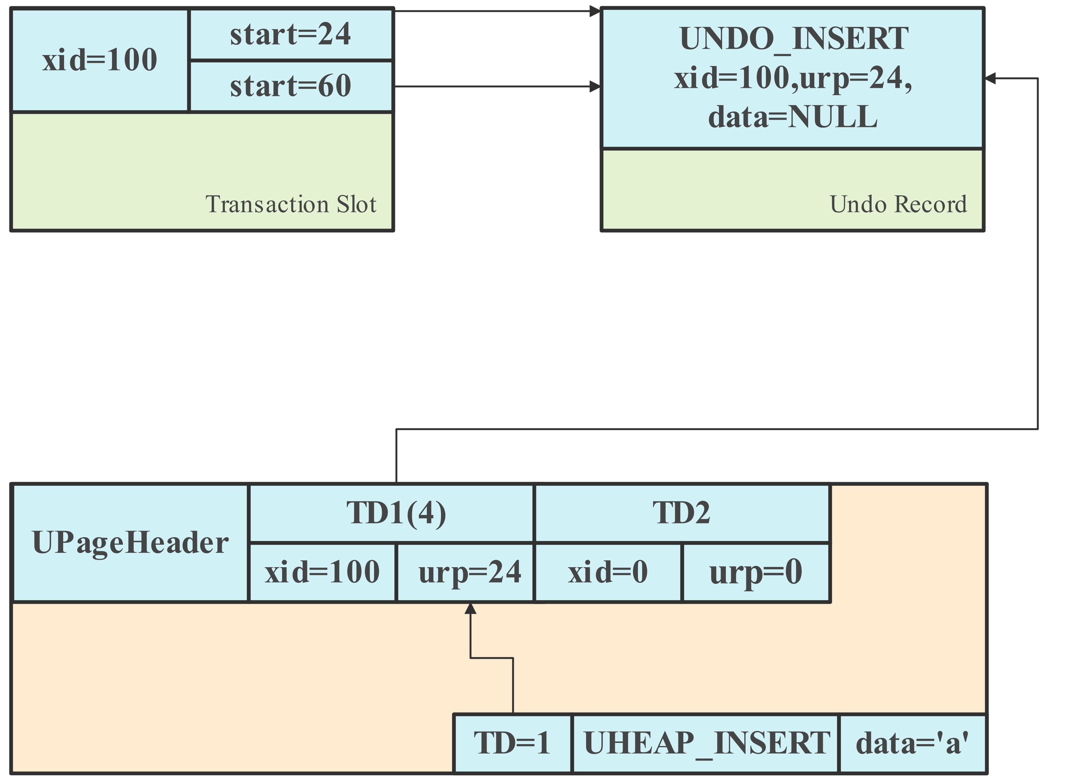 Ustore 的事务表中存储了事务与回滚段相关的所有信息,事务按照数据页面的方式,统一受缓冲区管理。事务页面存储于 Undo 表空间的特定区域,受 Undo 表空间管理。