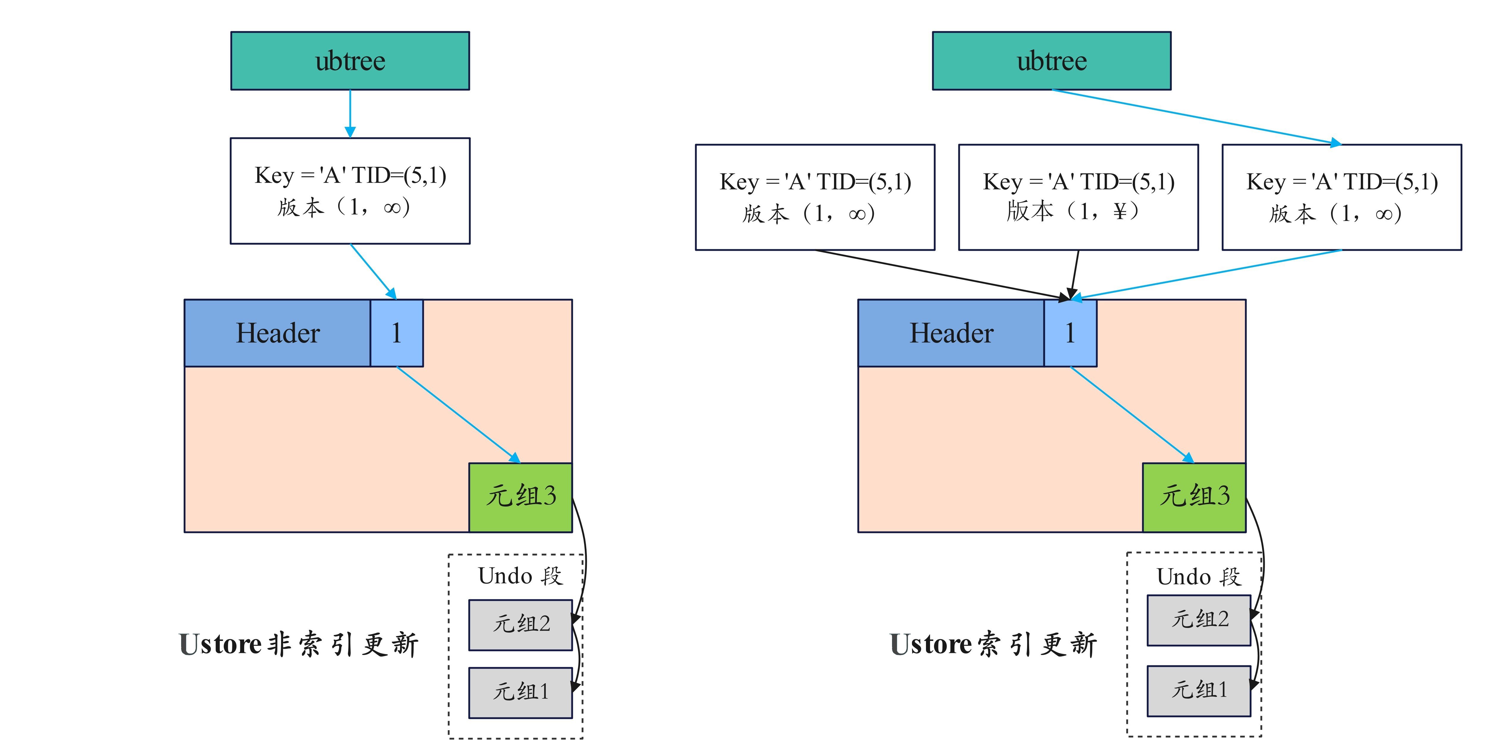 - 每当一个事务修改数据时,Ustore会将旧版本的数据放在回滚段的 Undo 目录中。回滚段用于在事务回滚时恢复数据,同时也支持多版本读取。当一个事务需要访问历史版本时,可以通过回滚段找到之前的旧数据。